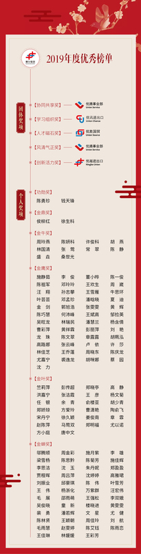 2019年度的团队奖项之协同共享奖、学习组织奖、人才磁石奖、风清气正奖、创新活力奖分别由优腾事业部、优讯公司、优胜公司、优腾事业部、优越公司等获得。这些团体奖项均非具体的业务奖项,一些团体奖项也不能完全以数据指标进行考核评比,但这些奖项或深度体现企业文化或致力于打造学习型组织或间接推动业绩协同共享,所以集团层面与各公司各部门均非常重视,奖项评选过程你追我赶竞争非常激烈。