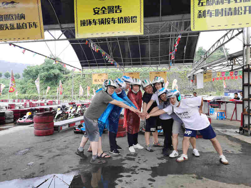 与此同时,义乌技术部也开启了他们惊险刺激的山地卡丁车之旅,泥浆四射的赛道给本就讲究速度的赛车运动平添了一份狂野;只懂游戏的宅男在高低起伏的越野赛道中彻底释放出了激情!