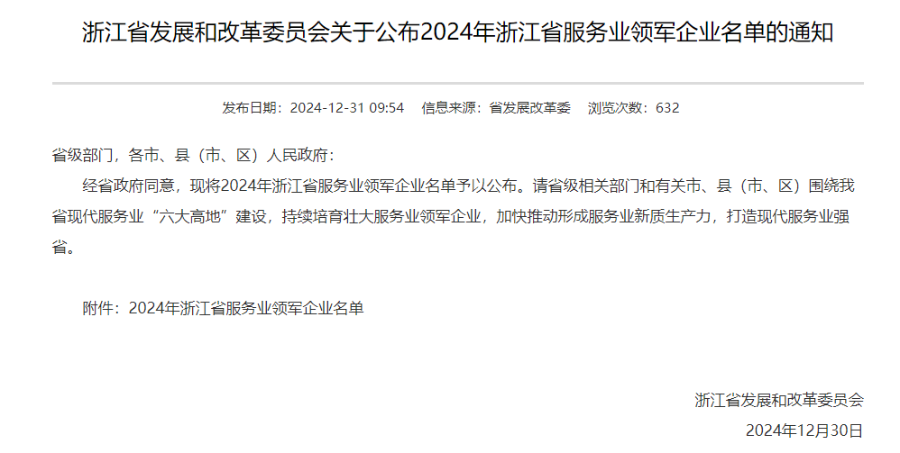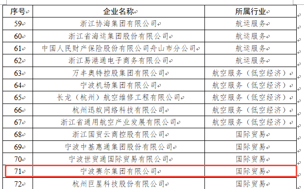 近日,浙江省发改委发布了2024年浙江省服务业领军企业名单,宁波赛尔集团有限公司榜上有名。