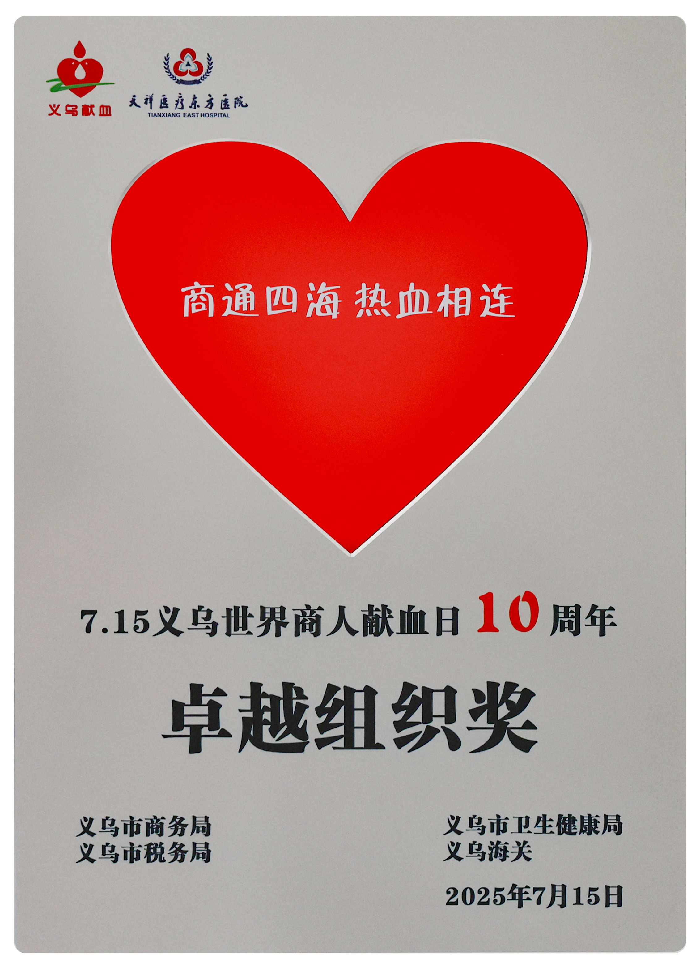 7月15日上午,“商通四海 热血相连”第十届7•15义乌世界商人献血日主会场活动在天祥东方医院隆重举行。本届活动由义乌市商务局、卫健局、税务局、海关等单位联合主办,30余家中外商人团体携手承办。作为义乌市外贸出口领军企业,赛尔集团受邀出席本次十周年活动,集团综合行政部总监龚江民、各公司和职能部门的15名代表共同参加。