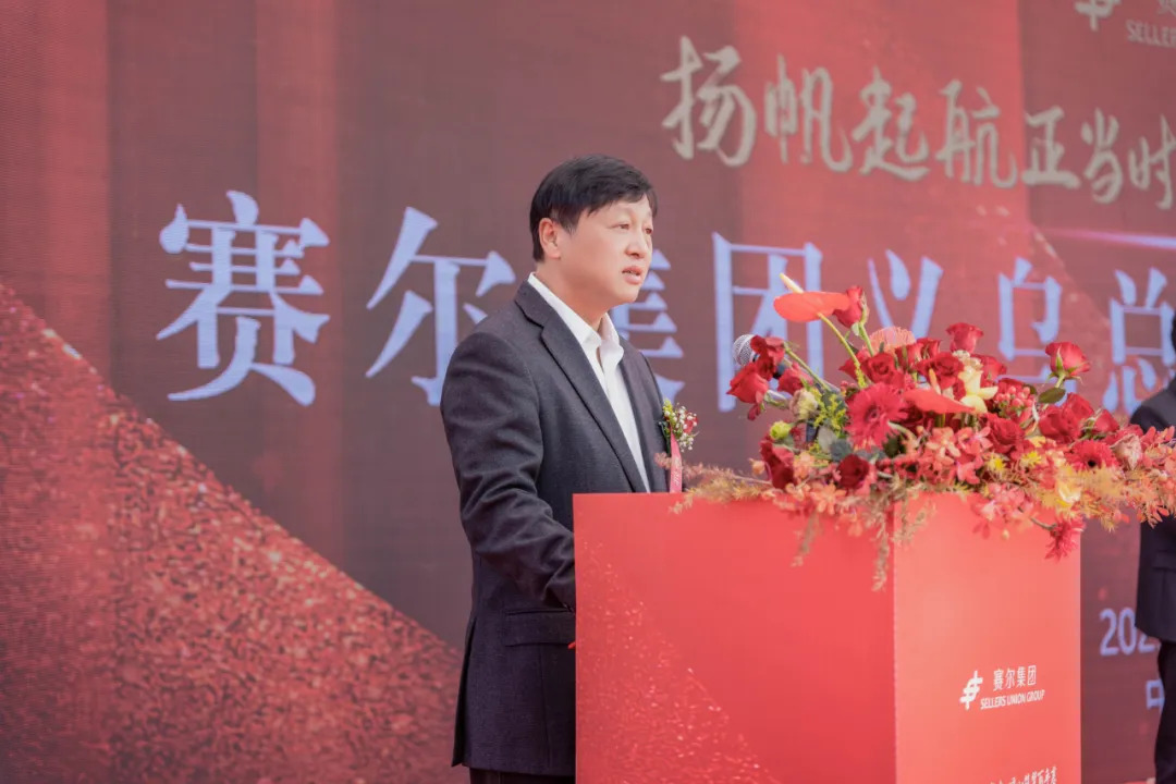 义乌自由贸易发展区党工委副书记、管委会副主任毛湘宏在致辞中表示,赛尔集团伴随义乌“兴商建市”的战略,从小到大、蓬勃发展,已成为义乌日用消费品领域的领军企业和浙江省规模最大的出口贸易集团之一。赛尔集团不仅是义乌城市发展和市场繁荣的历史见证者,也是义乌商品走出国门、享誉世界的重要参与力量,为义乌优化贸易方式和产品结构,保持城市外贸综合竞争力作出了重要贡献。希望赛尔集团借助义乌总部大厦项目落地,持续推动产品创新、模式创新、管理创新,进一步做大规模、放大优势、繁荣生态,助推义乌国际贸易继续走在前列,在新一轮全球供应链价值链重构浪潮中继续勇立潮头、再立新功。