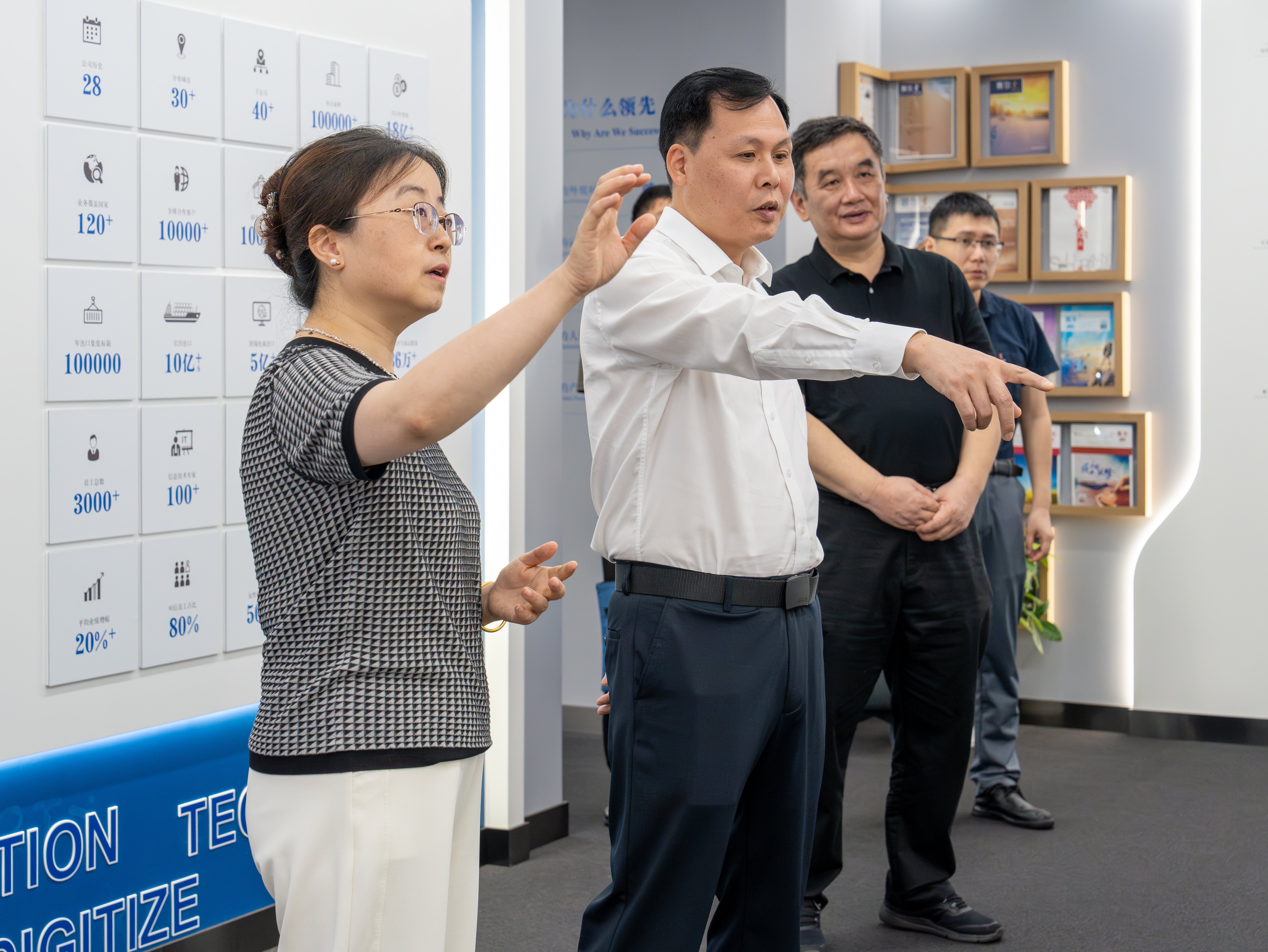 调研座谈会上,集团总裁助理朱玲向调研组领导汇报了集团上半年的经营情况和对美出口现状。受严峻国际形势影响,传统B2B贸易和跨境电商B2C贸易业务板块的业绩增速有所放缓,集团积极应对挑战,多举措化解发展难题,通过深化欧美市场布局、拓展“一带一路”及拉美、非洲等新兴市场、强化生态圈协同发展等战略举措,有效克服了外部环境不利影响。虽然增速较预期有所放缓,但上半年仍实现了整体业绩逆势增长,同比增幅超20%,展现出较强的发展韧性和应变能力。