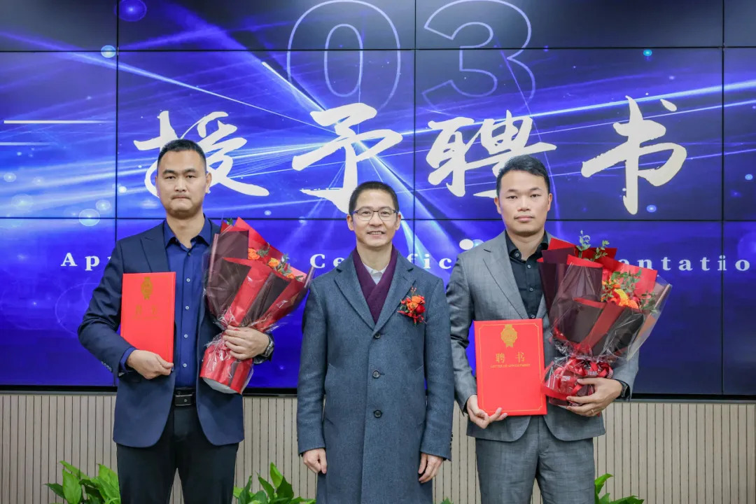 徐平炬董事长为优琥和优贯事业部负责人颁发聘书,责任与期望并肩。