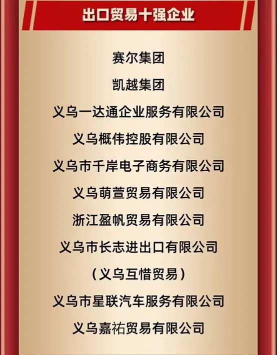 勇立潮头,担当使命丨赛尔集团荣获2024年义乌市出口贸易十强企业