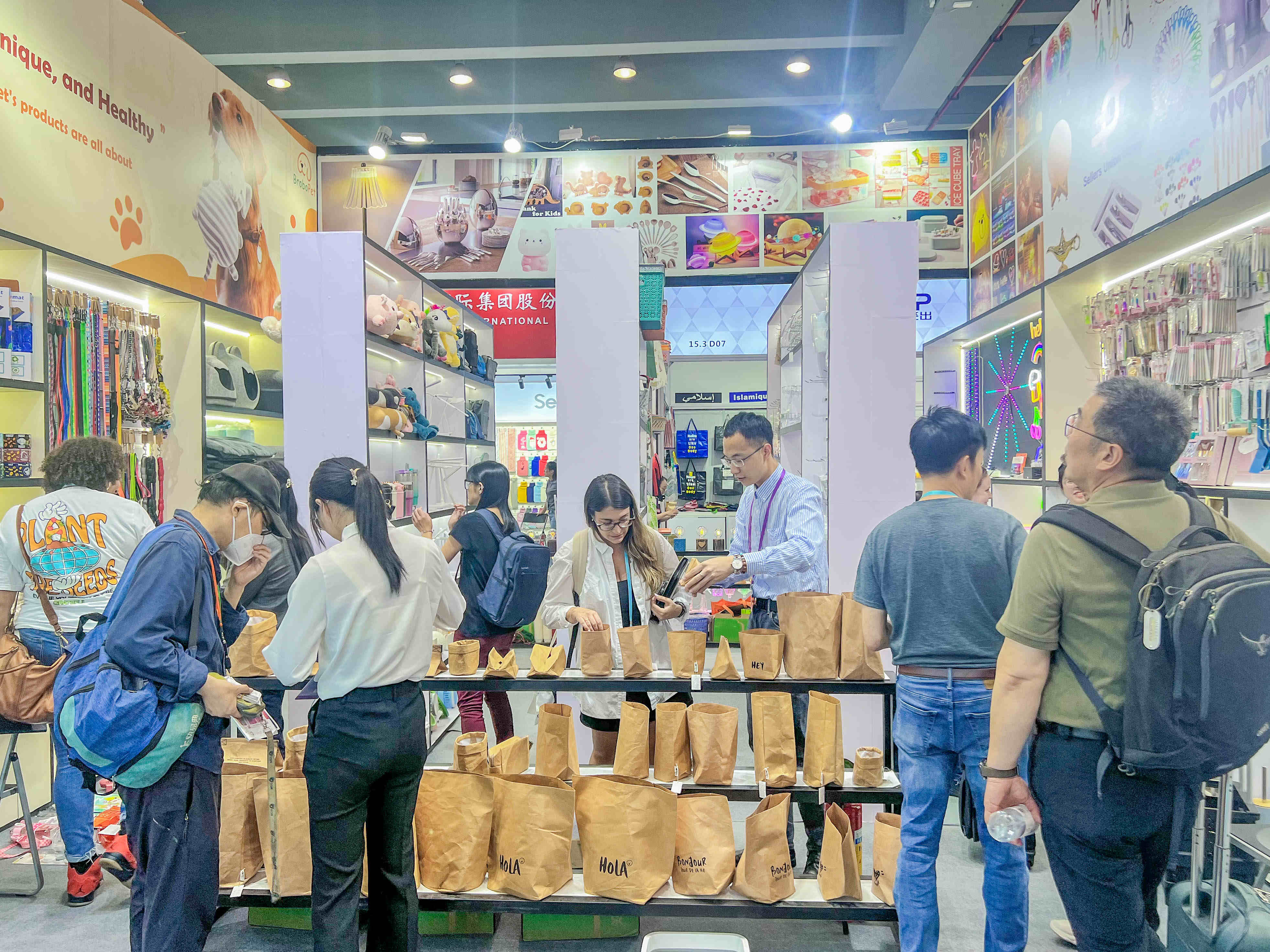 探索未来方向。优胜公司摊位负责人王淑乐在广交会上注意到不少外国客户会被“再生”字样吸引,加之国际社会对可持续理念的重视,认为环保必然会成为行业未来的重要趋势,公司须提前布局。实际上,他几年前便研究过可再生材料,但碍于早期国内供应链不成熟、替代成本过高等原因,研究未能继续。他表示,目前国内的环保材料概念多落地少,真正专研环保材料的公司都还在发展期。集团拥有丰富的供应商资源,完全有能力开发符合资质的可再生材料用于产品生产与包装。提前专注此类材料的研发,必然能抢占更多市场份额,迎接新一轮行业风口带来的机会。淑乐表示,此次广交会伴随着很多不确定性,但机遇大于挑战,从中发现业务新机会,给了他很多信心。